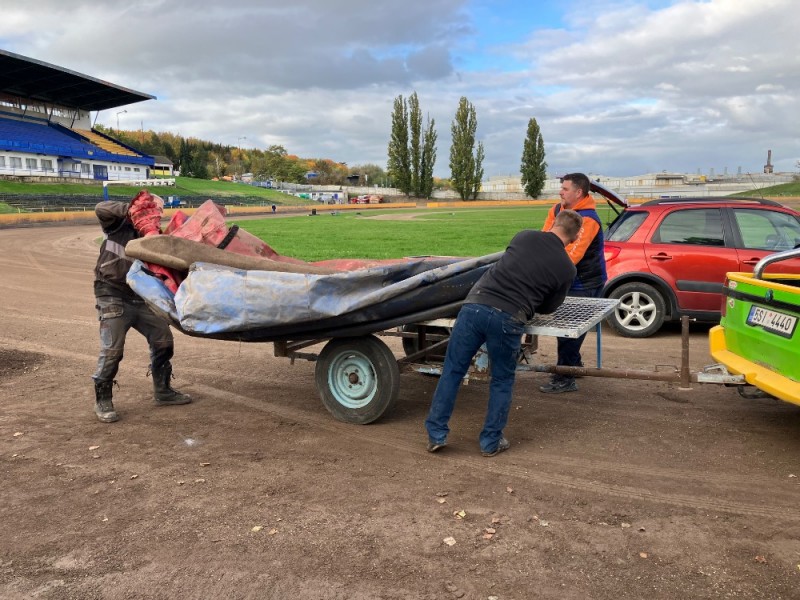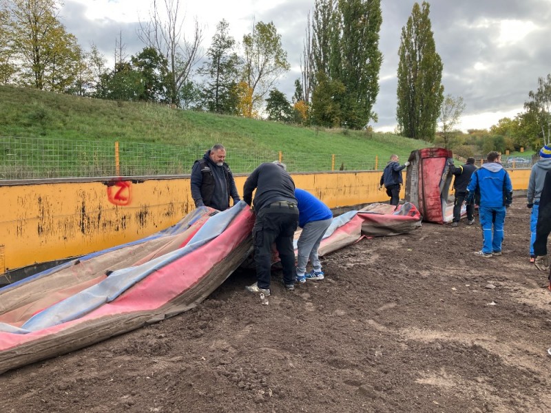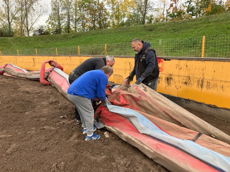 Sobota 18.řijna patřila na plochodrážním stadionu ve Slaném k nezbytné každoroční podzimní pracovní činnosti, kdy dochází k demontáži a následnému zazimování ochranných nafukovacích barier a dalších nezbytných záležitostí, které souvisí ze zimní plochodrážní pauzou, která nás na klasické dráze čeká.