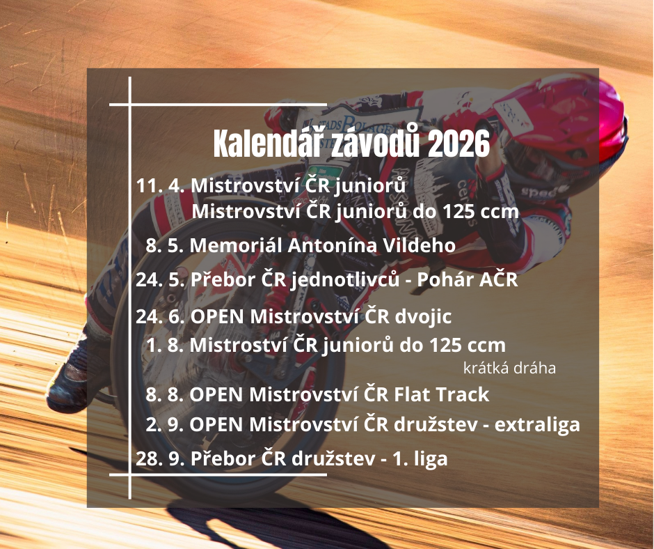 Kalendář závodů- rok 2026 - stadion AK Slaný